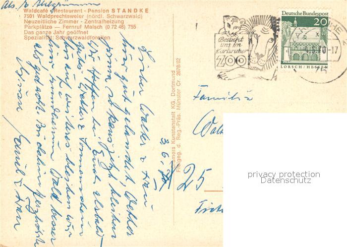 73712013 alte Postkarte Waldprechtsweier Waldcafe Restaurant Pension Standke Fliegeraufnahme postalisch gelaufen Erhaltung siehe scans [WerneD78] KatCode: 11110008215046