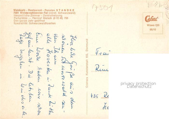 73871070 alte Postkarte Waldprechtsweier Waldcafe Restaurant Pension Standke postalisch gelaufen Erhaltung siehe scans [WerneD78] KatCode: 11110008215046