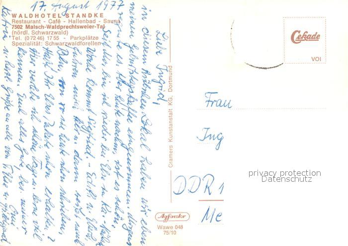 73065957 alte Postkarte Waldprechtsweier Waldhotel Standke Restaurant Cafe Hallenbad im Schwarzwald postalisch gelaufen Erhaltung siehe scans [FriedD77] KatCode: 11110008215046