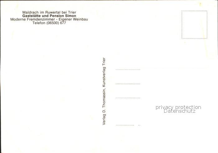 72274780 Waldrach Gaststaette Pension Simon postalisch nicht gelaufen Erhaltung siehe scans KatCode: 11110007235141