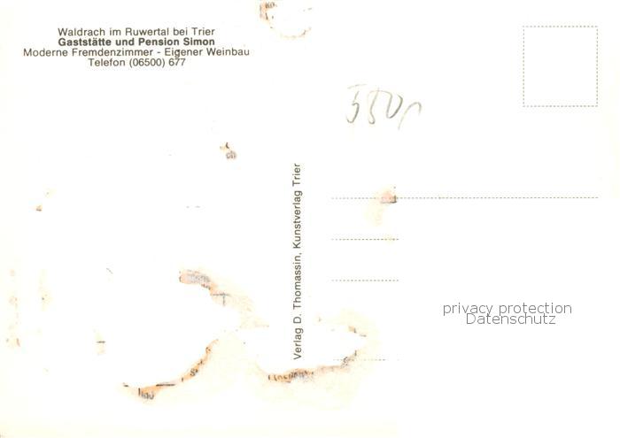 73873606 Waldrach Gaststaette und Pension Simon postalisch nicht gelaufen Erhaltung siehe scans [WerneD78] KatCode: 11110007235141