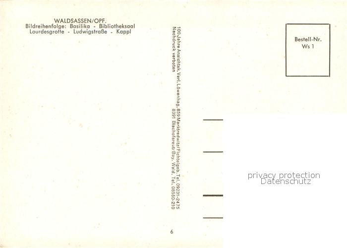 73737110 Waldsassen Basilika Bibliotheksaal Lourdesgrotte Ludwigstrasse Kappl postalisch nicht gelaufen Erhaltung siehe scans [FriedD77] KatCode: 11110009377158