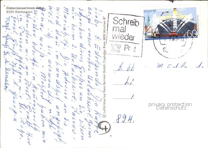 72574190 alte Postkarte Waldsassen Cistercienserinnen Abtei Luftaufnahme postalisch gelaufen Erhaltung siehe scans [KathaD79] KatCode: 11110009377158