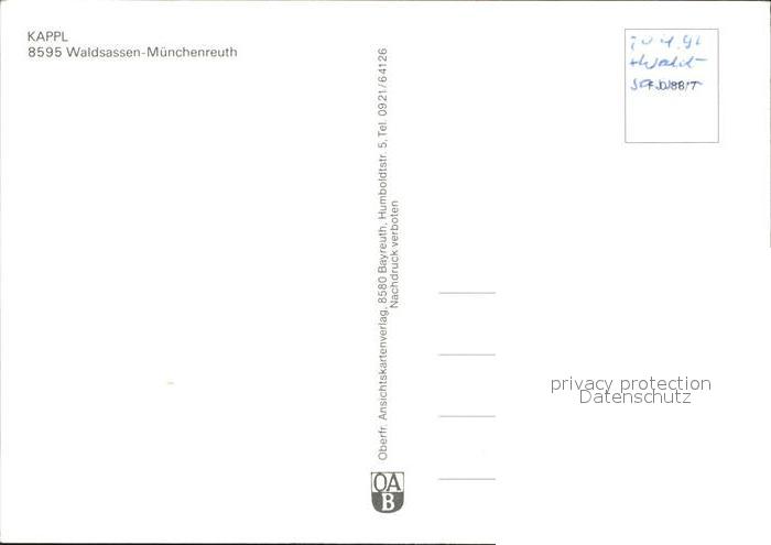 72376106 Waldsassen Kappl Muenchenreuth postalisch nicht gelaufen Erhaltung siehe scans KatCode: 11110009377158