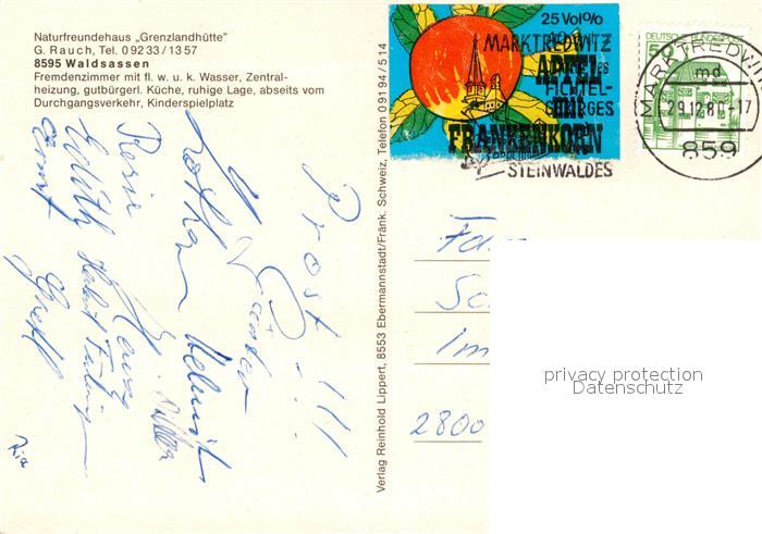 73323336 alte Postkarte Waldsassen Naturfreundehaus Grenzlandhuette postalisch gelaufen Erhaltung siehe scans [FriedD77] KatCode: 11110009377158