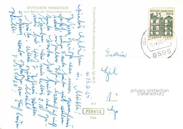 72856384 alte Postkarte Waldsassen Stiftskirche und Schule der Cistercienserinnen postalisch gelaufen Erhaltung siehe scans [WerneD78] KatCode: 11110009377158