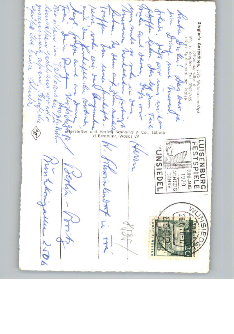 31164036 Waldsassen Ziegleras Gaststaetten postalisch nicht gelaufen KatCode: 11110009377158