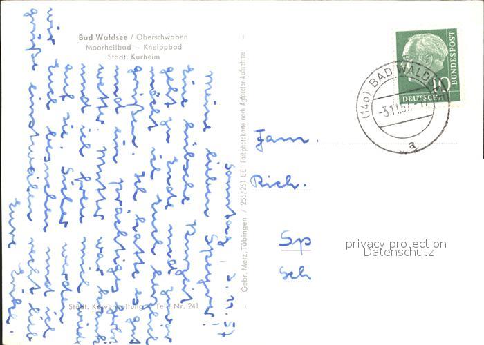 72376223 alte Postkarte Waldsee Bad Moorbad Kneippbad Staedtische Kurheim postalisch gelaufen Erhaltung siehe scans KatCode: 11110008436009