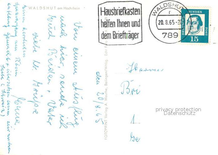 43363173 alte Postkarte Waldshut-Tiengen Fliegeraufnahme am Hochrhein postalisch gelaufen Erhaltung siehe scans [WerneD78] KatCode: 11110008337126
