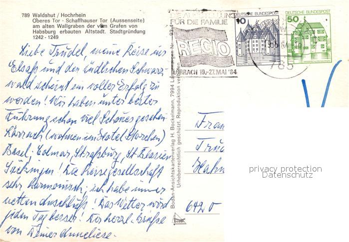 73040728 alte Postkarte Waldshut-Tiengen Oberes Tor postalisch gelaufen Erhaltung siehe scans [NatalD47] KatCode: 11110008337126