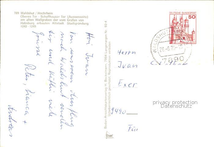 72555627 alte Postkarte Waldshut-Tiengen Oberes Tor Schaffhausener Tor am alten Wallgraben postalisch gelaufen Erhaltung siehe scans [AndreD76] KatCode: 11110008337126