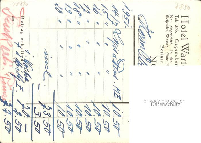 31714640 Waldshut Tiengen Rhein Hotel Warteck postalisch nicht gelaufen Erhaltung siehe scans KatCode: 11110008337126