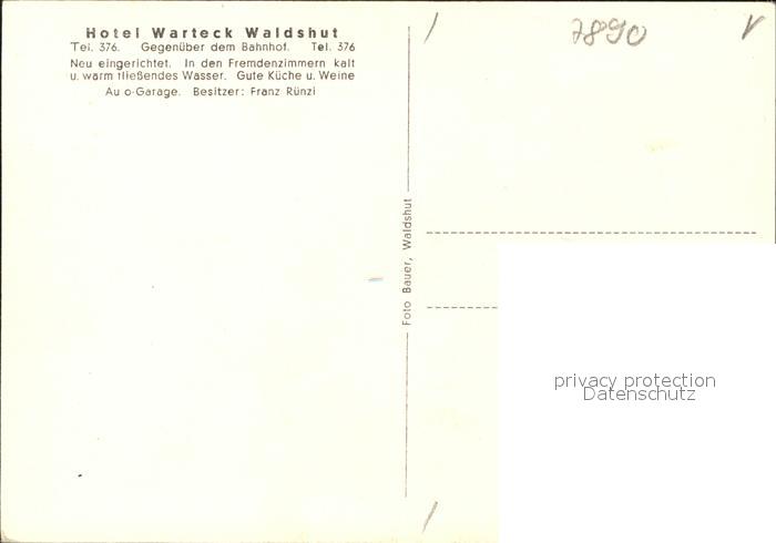 31714641 Waldshut Tiengen Rhein Hotel Warteck postalisch nicht gelaufen Erhaltung siehe scans KatCode: 11110008337126