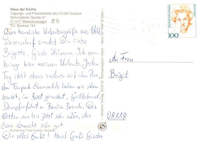 73880494 alte Postkarte Waldsieversdorf CVJM Haus der Kirche postalisch gelaufen Erhaltung siehe scans [WerneD78] KatCode: 11110012064484