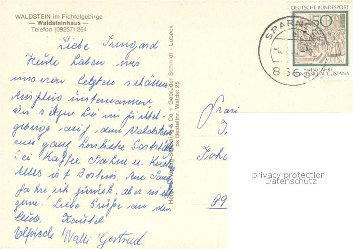 73659398 alte Postkarte Waldstein Fichtelgebirge Waldsteinhaus Gaststaette Natur Felsen Aussichtspavillon postalisch gelaufen Erhaltung siehe scans [FriedD77] KatCode: 11110009479169