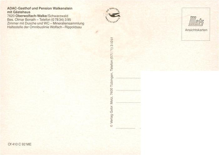 73883826 Walke Oberwolfach Schwarzwald ADAC Gasthof Pension Walkenstein Restaurant Ortsansicht postalisch nicht gelaufen Erhaltung siehe scans [FriedD77] KatCode: 11110008317093