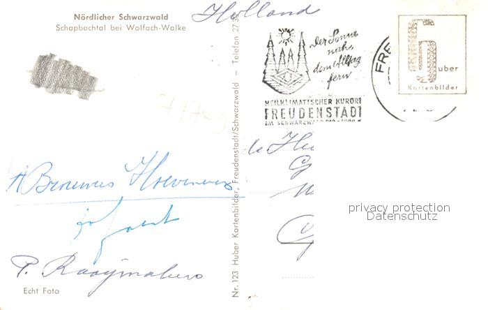 73099202 alte Postkarte Walke Schapbachtal postalisch gelaufen Erhaltung siehe scans [KathaD81] KatCode: 11110008317093