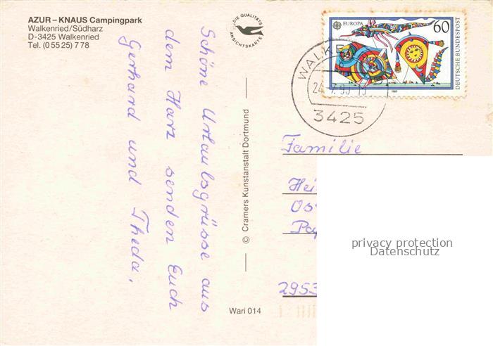 74096387 alte Postkarte Walkenried AZUR Knaus Campingpark Panorama Teich Hallenbad Spielplatz postalisch gelaufen Erhaltung siehe scans [WerneD78] KatCode: 11110003156012