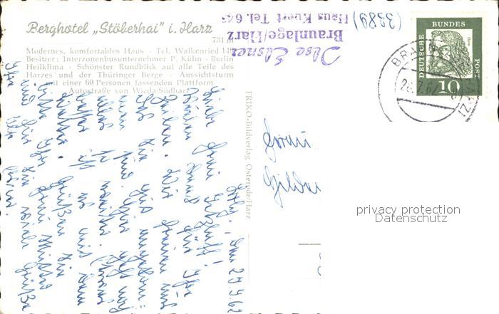 72475647 alte Postkarte Walkenried Berghotel Stoeberhai postalisch gelaufen Erhaltung siehe scans KatCode: 11110003156012