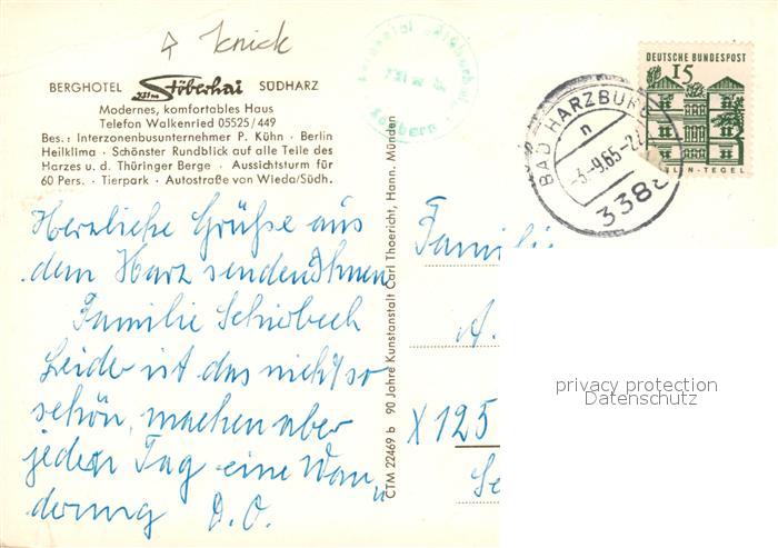73104864 alte Postkarte Walkenried Berghotel Stoeberhai Park Gartenterrasse Panorama postalisch gelaufen Erhaltung siehe scans [WerneD78] KatCode: 11110003156012
