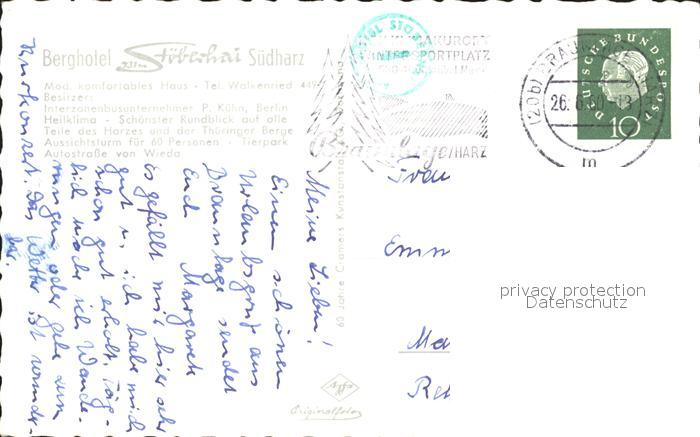 72105497 alte Postkarte Walkenried Berghotel Stoeberhai Suedharz Fliegeraufnahme postalisch gelaufen KatCode: 11110003156012