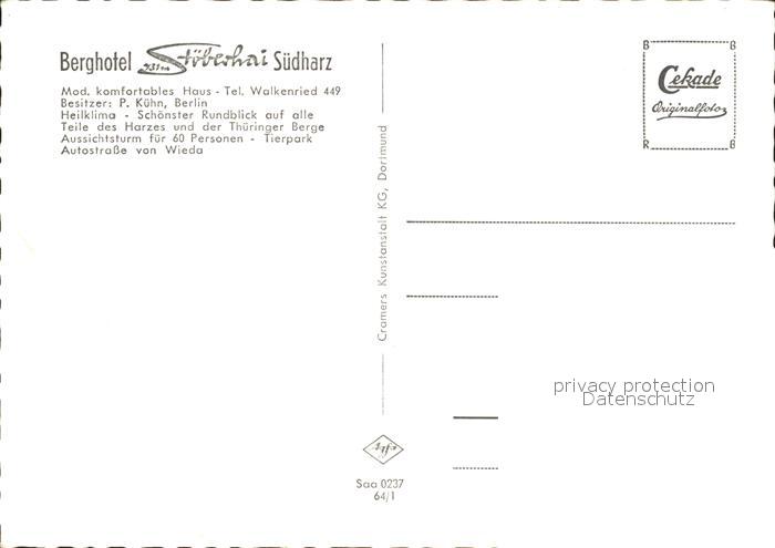 71943224 Walkenried Berghotel Stoeberhai Wild postalisch nicht gelaufen Erhaltung siehe scans KatCode: 11110003156012