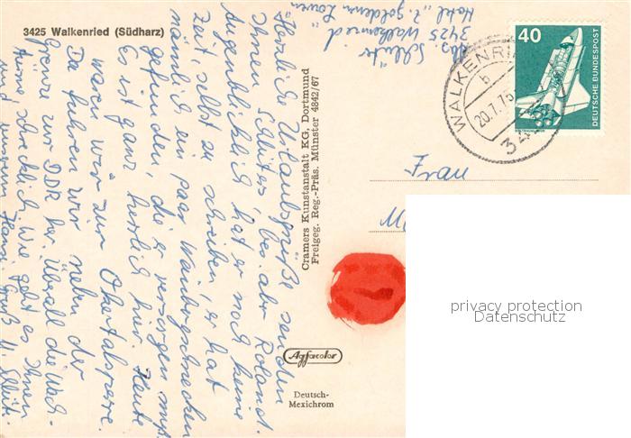 73782807 alte Postkarte Walkenried Fliegeraufnahme postalisch gelaufen Erhaltung siehe scans [WerneD78] KatCode: 11110003156012