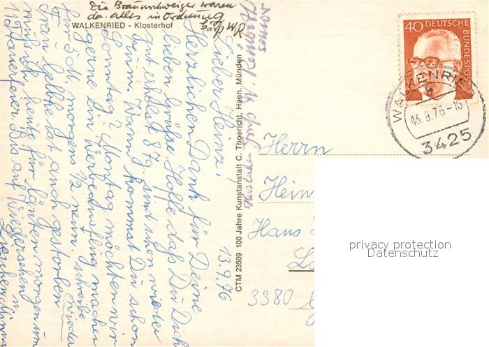 73081965 alte Postkarte Walkenried Klosterhof postalisch gelaufen Erhaltung siehe scans [FriedD77] KatCode: 11110003156012