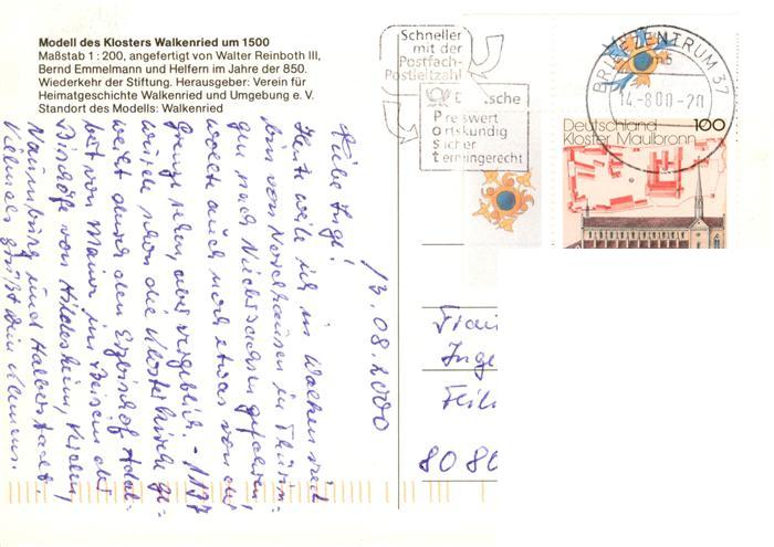 73879248 alte Postkarte Walkenried Modell des Klosters Walkenried um 1500 postalisch gelaufen Erhaltung siehe scans [WerneD78] KatCode: 11110003156012