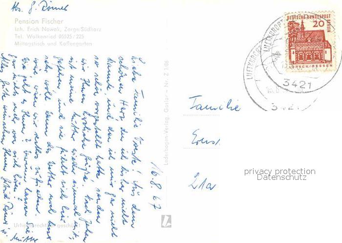 72743082 alte Postkarte Walkenried Panorama Pension Fischer postalisch gelaufen Erhaltung siehe scans [FriedD77] KatCode: 11110003156012