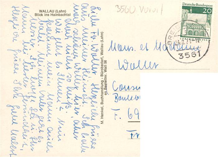 73936633 alte Postkarte Wallau Lahn Biedenkopf Panorama Blick ins Hainbachtal postalisch gelaufen Erhaltung siehe scans [FriedD77] KatCode: 11110006534004