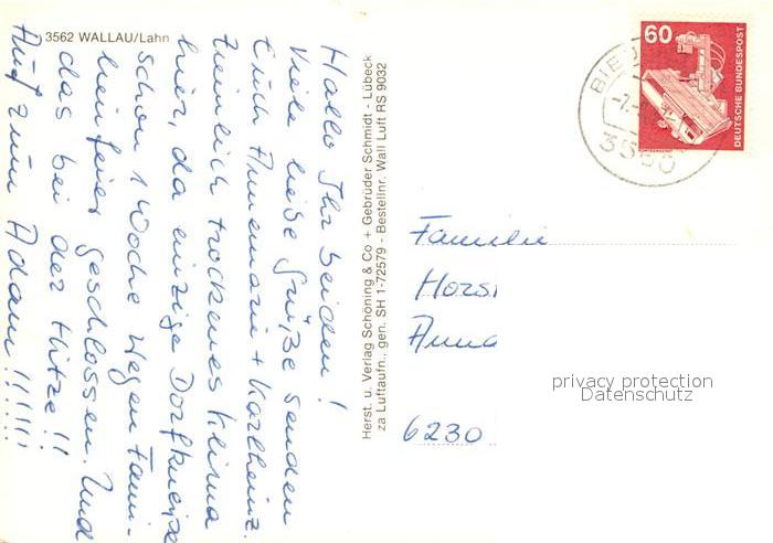 73123194 alte Postkarte Wallau Lahn Fliegeraufnahme postalisch gelaufen Erhaltung siehe scans [LiesaD40] KatCode: 11110006534004