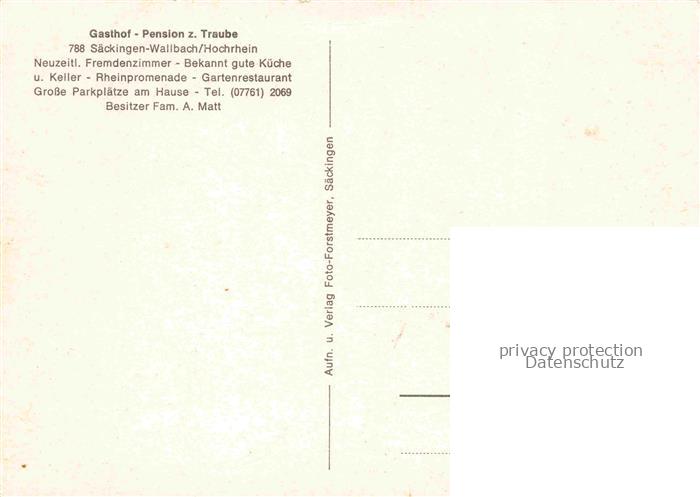 74010212 Wallbach Bad Saeckingen Gasthof Pension zur Traube Gastraeume Rheinpartie postalisch nicht gelaufen Erhaltung siehe scans [WerneD78] KatCode: 11110008337096