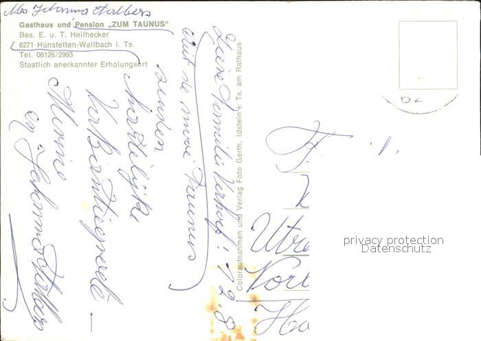 72493793 alte Postkarte Wallbach Taunus Gasthaus Pension Zum Taunus Landschaftspanorama postalisch gelaufen Erhaltung siehe scans KatCode: 11110006439007
