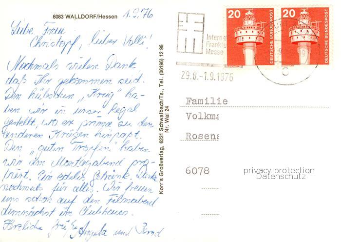 73864613 alte Postkarte Walldorf Hessen Rathaus Ehrenmal Ev Kirche postalisch gelaufen Erhaltung siehe scans [WerneD78] KatCode: 11110006433008