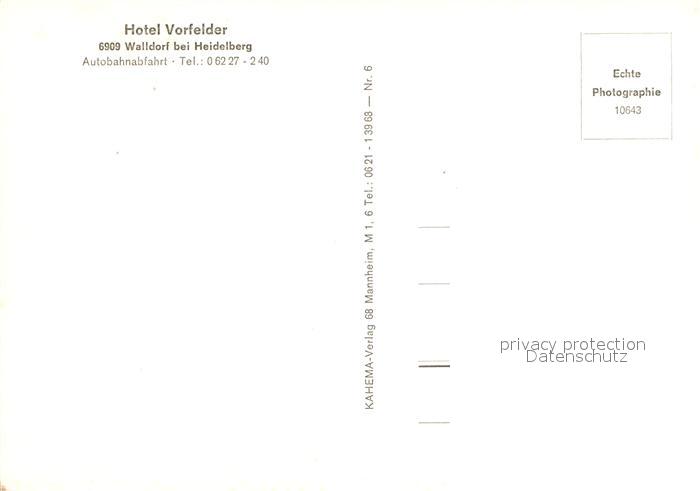 73616821 Walldorf Hotel Vorfelder postalisch nicht gelaufen Erhaltung siehe scans [KathaD81] KatCode: 11110008226095