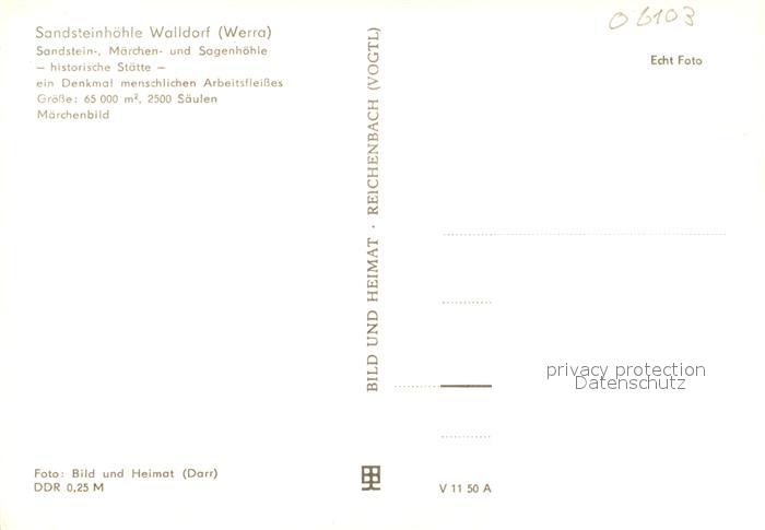 73070001 Walldorf Meiningen Sandstein Maerchen und Sagenhoehle postalisch nicht gelaufen Erhaltung siehe scans [WerneD78] KatCode: 11110016066085