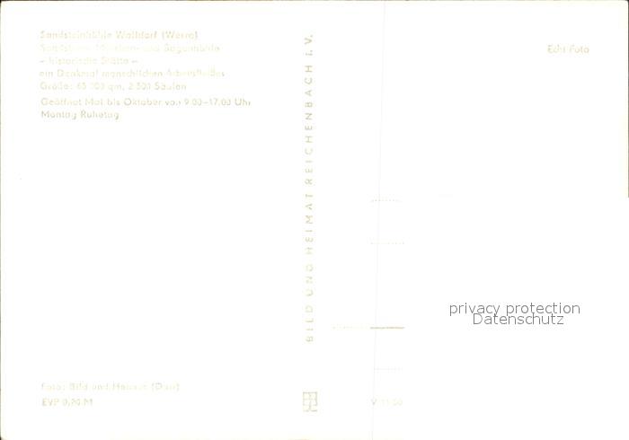 72406015 Walldorf Meiningen Sandsteinhoehle Maerchen und Sagen postalisch nicht gelaufen Erhaltung siehe scans KatCode: 11110016066085