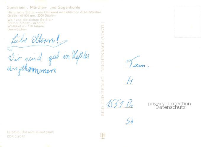73629336 Walldorf Meiningen Sandsteinhoehle Maerchenhoehle Sagenhoehle Historische Staette postalisch nicht gelaufen Erhaltung siehe scans [FriedD77] KatCode: 11110016066085