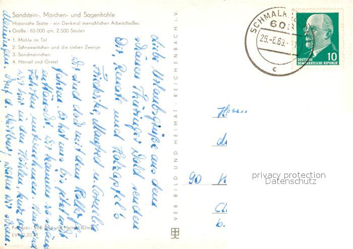 73070084 alte Postkarte Walldorf Meiningen Sandsteinhoehle postalisch gelaufen Erhaltung siehe scans [KathaD81] KatCode: 11110016066085