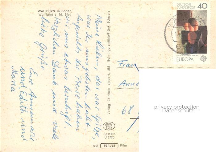 73152494 alte Postkarte Wallduern Ortsansicht mit Wallfahrtskirche Baumbluete postalisch gelaufen Erhaltung siehe scans [FriedD77] KatCode: 11110008225109