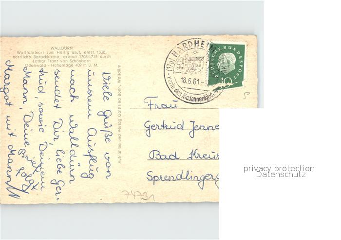 71985876 alte Postkarte Wallduern Rathaus Hauptstrasse Gewerbe Handelsschule Kaserne postalisch gelaufen Erhaltung siehe scans KatCode: 11110008225109
