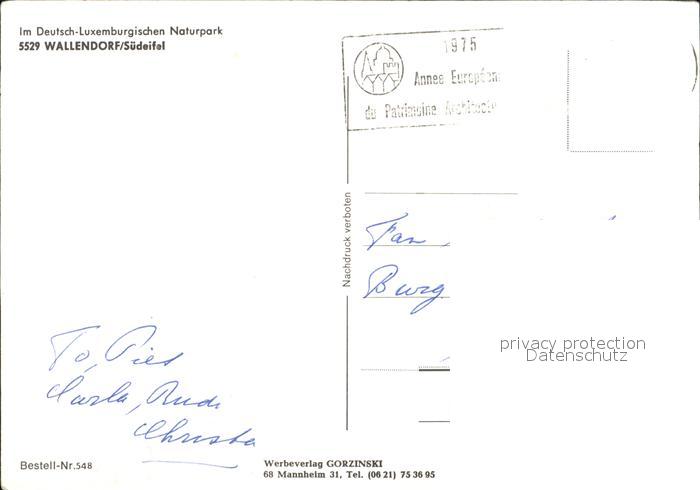 72494768 alte Postkarte Wallendorf Eifel Deutsch Luxemburgischer Naturpark postalisch gelaufen Erhaltung siehe scans KatCode: 11110007232131