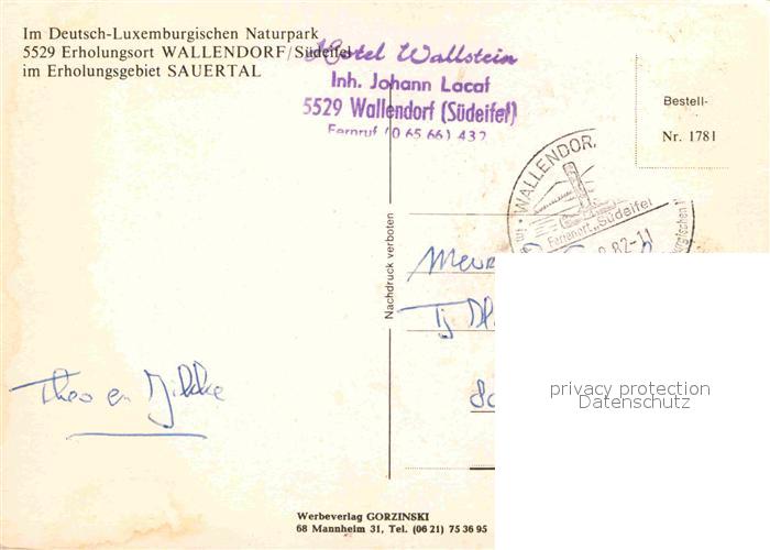 72891241 alte Postkarte Wallendorf Eifel im Naturpark Suedeifel postalisch gelaufen Erhaltung siehe scans [WerneD78] KatCode: 11110007232131