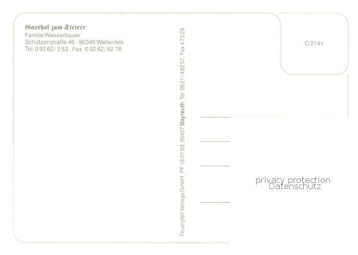 73760454 Wallenfels Oberfranken Gasthof zum Steirer Gastraeume postalisch nicht gelaufen Erhaltung siehe scans [FriedD77] KatCode: 11110009476184