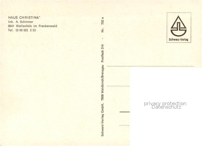 73722227 Wallenfels Oberfranken Haus Christina Pension postalisch nicht gelaufen Erhaltung siehe scans [LiesaD40] KatCode: 11110009476184