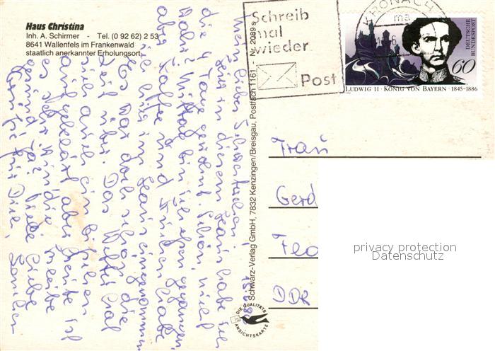 73076921 alte Postkarte Wallenfels Oberfranken Haus Christina postalisch gelaufen Erhaltung siehe scans [KathaD81] KatCode: 11110009476184