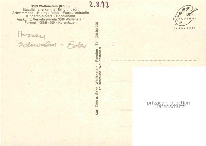 72889878 Wallenstein Kuranlagen Erholungsort postalisch nicht gelaufen Erhaltung siehe scans [FriedD77] KatCode: 11110006634011