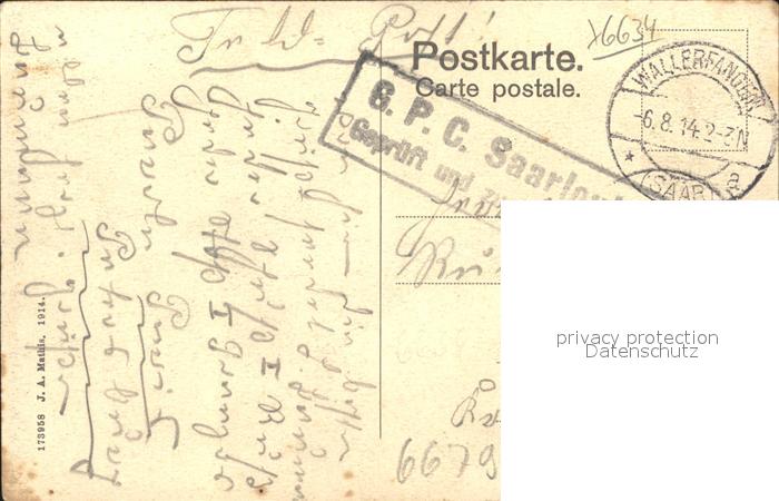 41815107 alte Postkarte Wallerfangen Partie aus dem Villeroy’schen Park postalisch gelaufen Feldpost Erhaltung siehe scans KatCode: 11110010044121