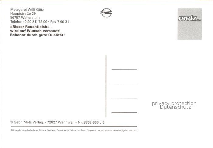 72545357 Wallerstein Metzgerei Goetz postalisch nicht gelaufen Erhaltung siehe scans [AndreD76 kv012box] KatCode: 11110009779224